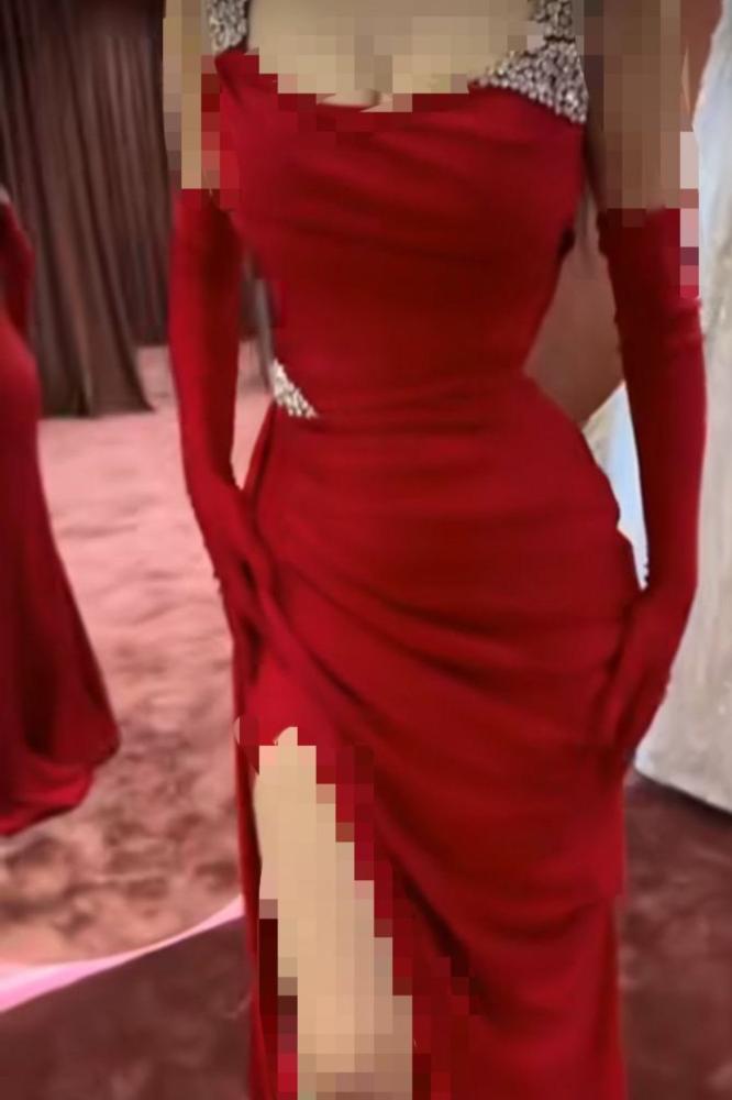 الخامة/لكرا كريب + تطريز يدوي كرستال
