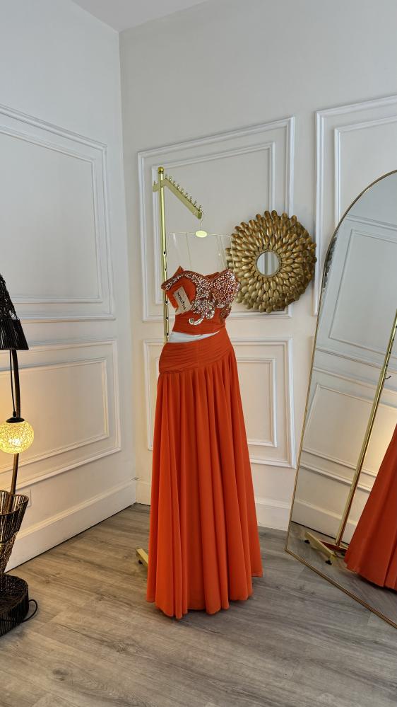 الخامة/شيفون جورجيت دبل كلوش+ صدريه بيج + تطريز يدوي كرستال فخم