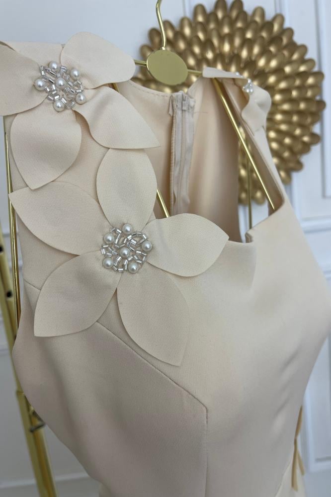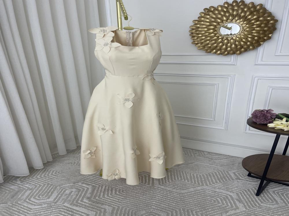 فستان قصير بقص ورد ليزر