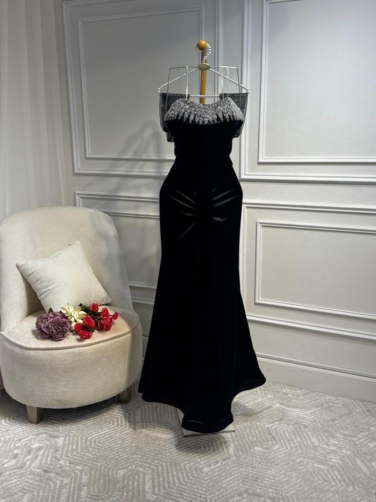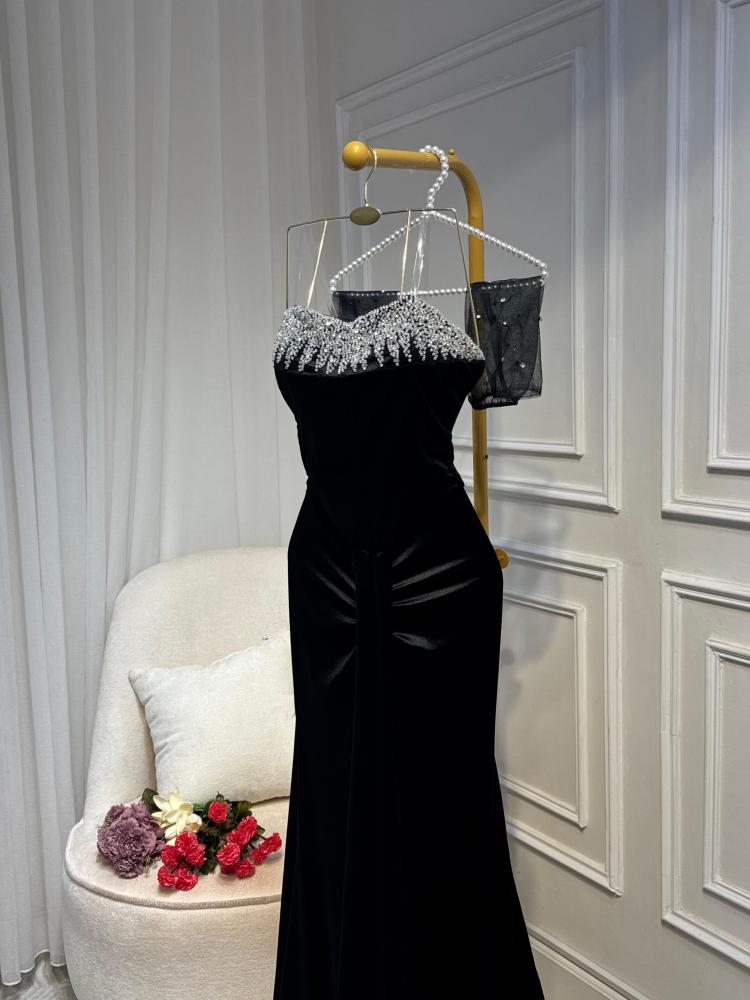 فستان مخمل شيك يدوي كرستال